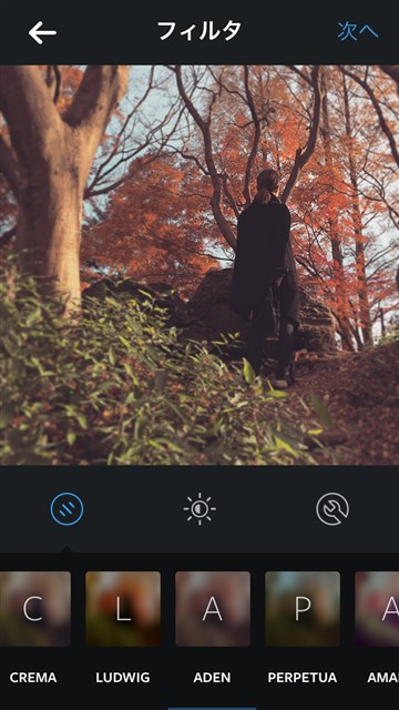 Instagramで撮ってもカメラロールから取り込んでもいいのだけど、フィルターを掛ける前に先ず補正を終了させておくのがよい。