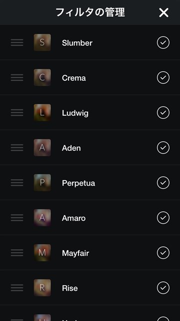 こんなかんじに並び順を変えたりon/offが設定できる。VSCOも見倣いたい機能である。