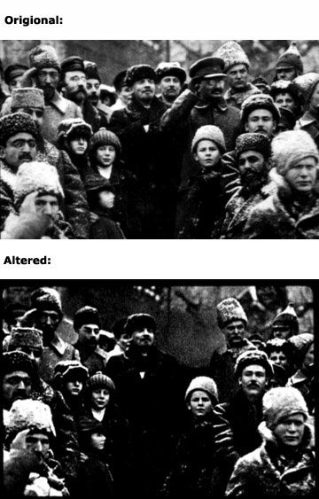 有名な一例として、赤の広場でウラジミール・レーニンがロシア革命の2周年を祝賀している様子を納めた写真があるのですが、