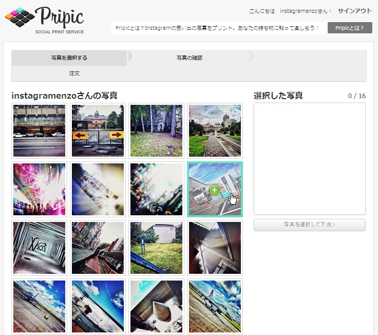 画面左に直近から自分がUPした画像が一覧されるので、好きな奴を叩いて選んでいく。
