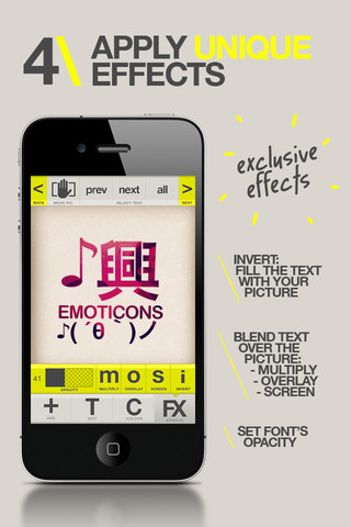 使い方は至って簡単で画像を読み込んでタップして文字入力して書体決めてスタイル決めてエフェクト決めてレイアウトして終了と。